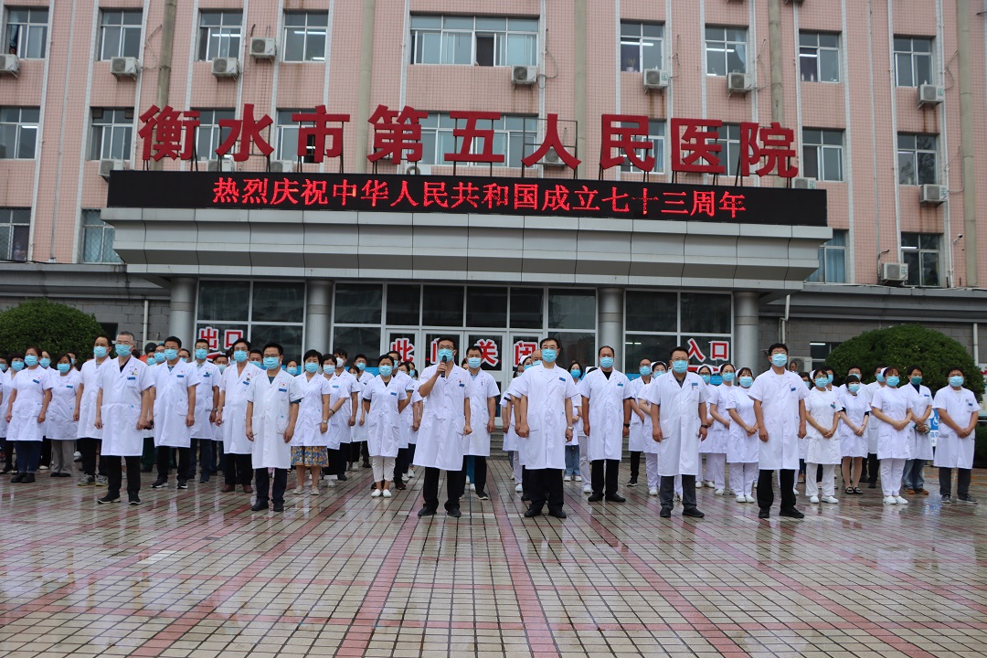 10月1日是中華人民共和國(guó)成立73周年,衡水市第五人民醫(yī)院舉行升旗儀式。醫(yī)院黨委書記韓非,院長(zhǎng)國(guó)義民及班子成員、行政職能部門部門代表、臨床醫(yī)技科室代表參加升旗儀式。升旗儀式由醫(yī)院黨委韓非主持。