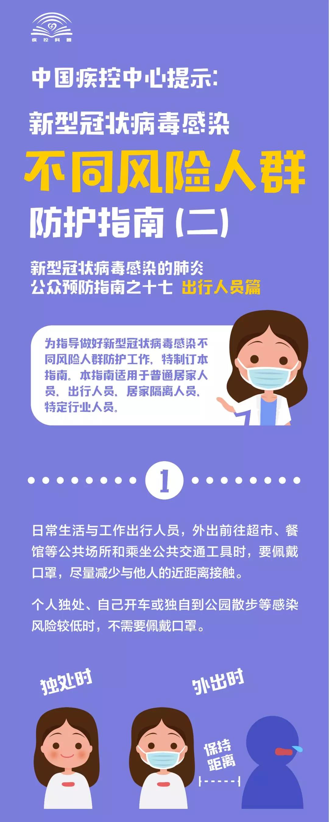 中國疾控中心提示:不同風(fēng)險(xiǎn)人群防護(hù)指南二(出行人員篇)