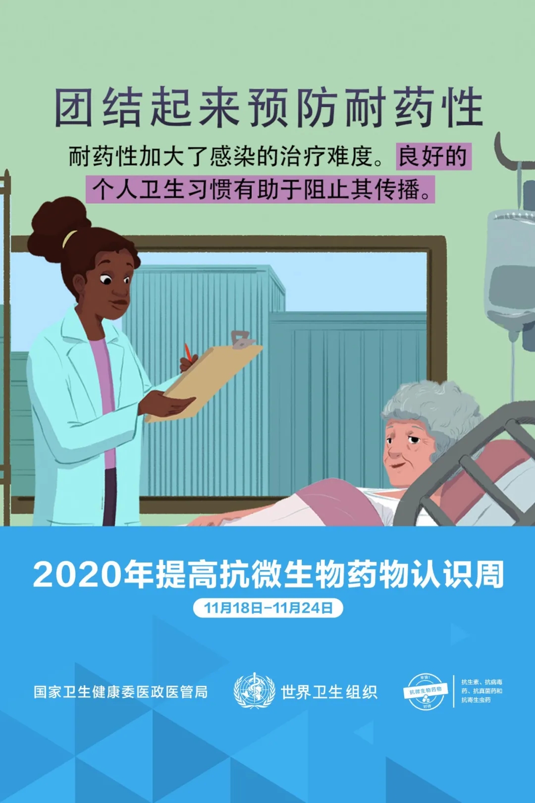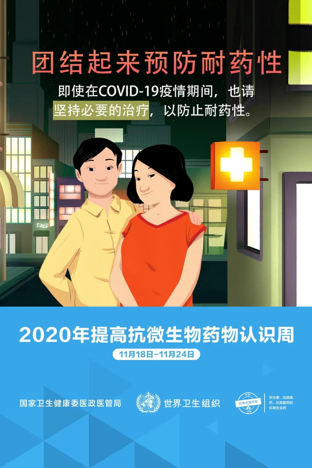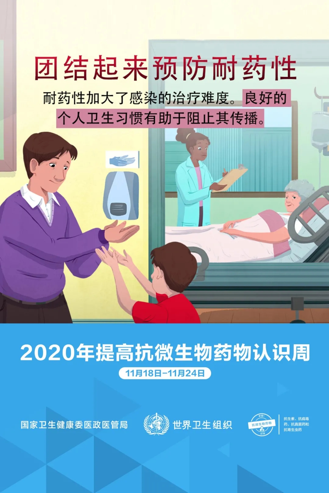為提高全社會(huì)合理使用抗微生物藥物的意識(shí)和水平,國(guó)家衛(wèi)生健康委醫(yī)政醫(yī)管局決定在11月18日-24日組織開展“2020年提高抗微生物藥物認(rèn)識(shí)周”活動(dòng)。以“團(tuán)結(jié)起來(lái)保護(hù)抗微生物藥物”為主題,通過(guò)廣泛宣傳抗微生物藥物合理使用知識(shí),提高社會(huì)公眾和醫(yī)務(wù)人員對(duì)耐藥危機(jī)的認(rèn)識(shí);牢固樹立抗微生物藥物合理使用觀念,減少不必要的藥物使用,營(yíng)造全社會(huì)關(guān)心、支持和參與抗微生物藥物合理使用的良好氛圍。