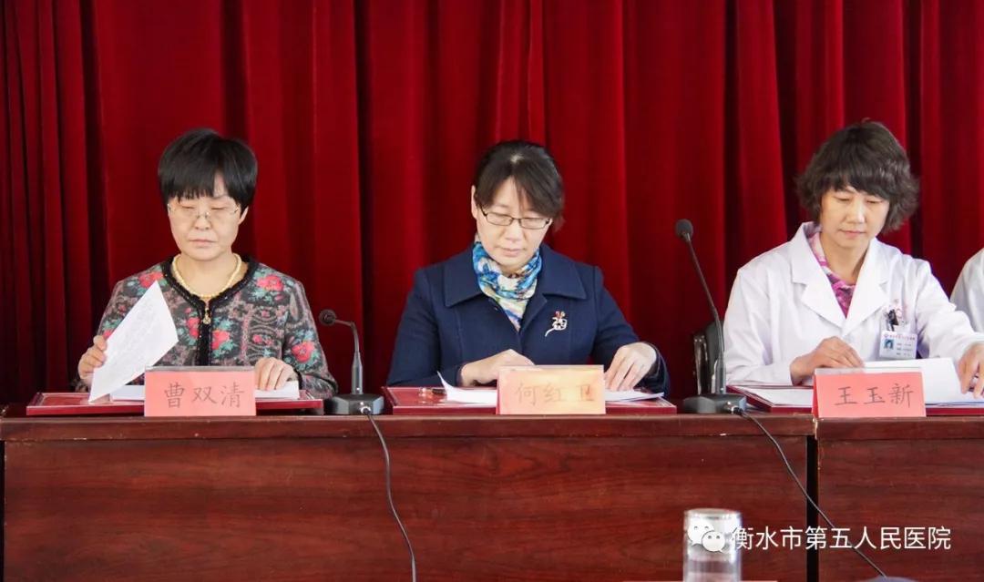 ? 2018年2月5日下午,衡水市第五人民醫(yī)院2017年度總結(jié)表彰大會(huì)在五樓大會(huì)議室舉行。衡水市衛(wèi)生計(jì)生委副主任曹雙清、衡水市桃城區(qū)副區(qū)長(zhǎng)何紅衛(wèi)、衡水市桃城區(qū)衛(wèi)生計(jì)生局局長(zhǎng)房超捷出席了大會(huì)。院領(lǐng)導(dǎo)班子成員、科室主任、護(hù)士長(zhǎng)、先進(jìn)個(gè)人、優(yōu)秀職工代表等人員參加了本次會(huì)議。