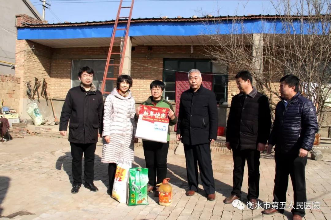 ? 2018年2月6日,在新春佳節(jié)即將到來(lái)之際,衡水市第五人民醫(yī)院院長(zhǎng)王玉新帶領(lǐng)醫(yī)院班子成員走訪慰問(wèn)了我院離退休老干部,并與扶貧工作隊(duì)人員一起看望了貧困群眾,為他們送去米、面、油等日用品,也送去醫(yī)院的親切關(guān)懷與新春祝福。