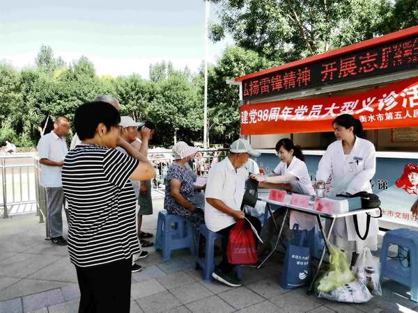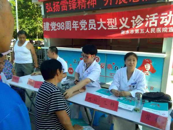 在建黨98周年來臨之際,6月30日下午,我院組織黨員志愿者以及科室骨干到孔穎達文化公園開展義診活動。