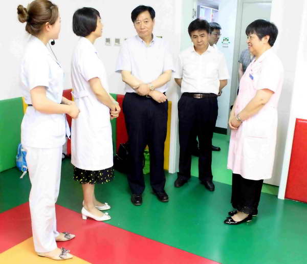 7月4日上午,河北省殘疾人聯(lián)合會(huì)理事長(zhǎng)師振軍一行,在衡水市委常委、統(tǒng)戰(zhàn)部長(zhǎng)商黎兵,衡水市殘疾人聯(lián)合會(huì)理事長(zhǎng)石英俊、副理事長(zhǎng)陳金勝等領(lǐng)導(dǎo)的陪同下,深入我院兒童康復(fù)中心開展實(shí)地調(diào)研。我院王玉新院長(zhǎng)、李建梅副院長(zhǎng)及兒童康復(fù)中心楚春嶺主任等相關(guān)工作人員全程陪同調(diào)研。