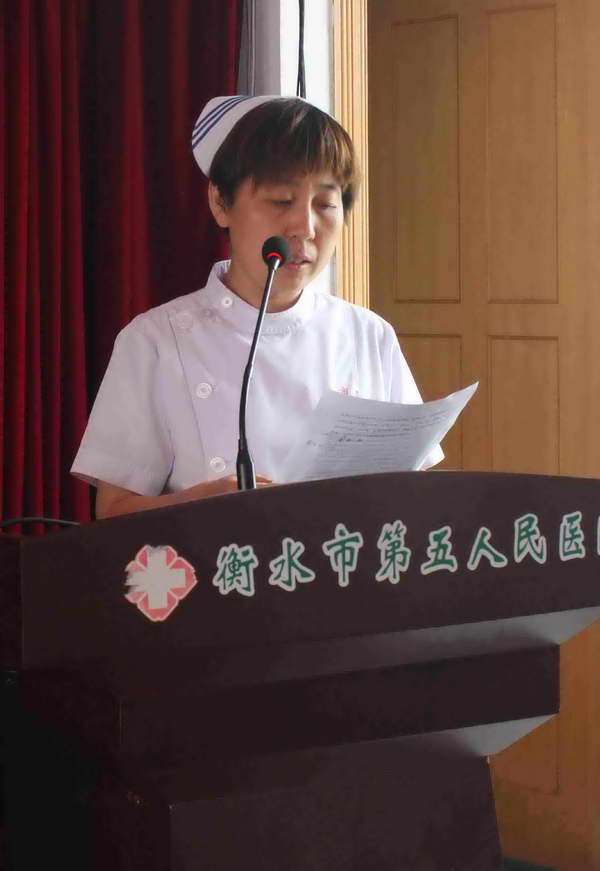 護(hù)理部主任吳紅恩代表護(hù)理人員表態(tài)發(fā)言?