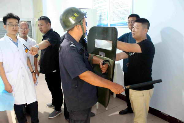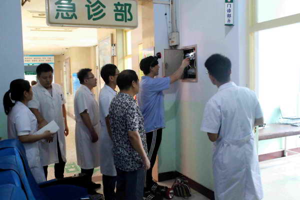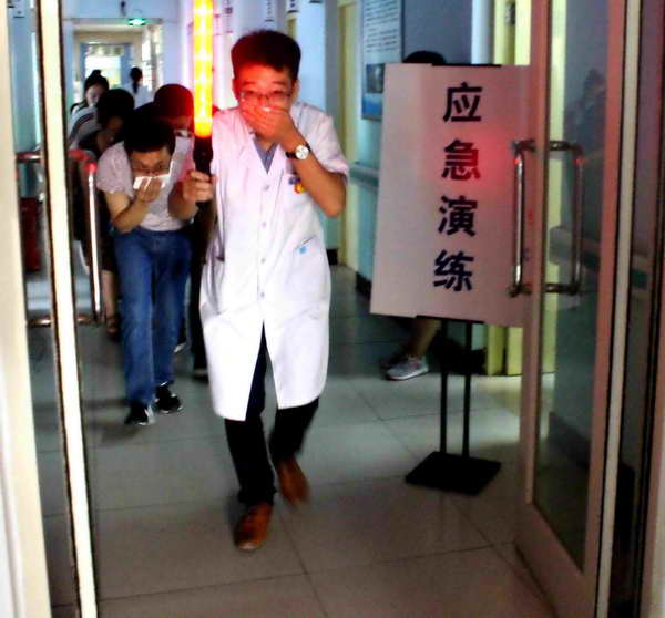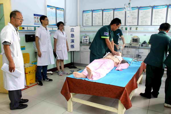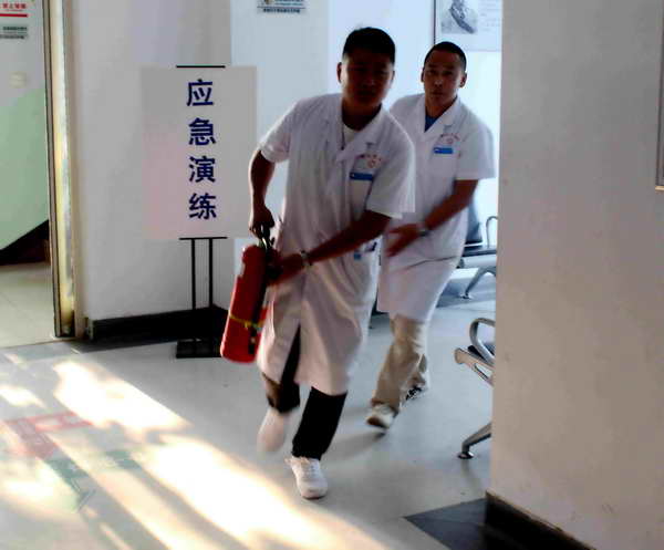 為更好地保障門診診療秩序,有效預(yù)防、控制突發(fā)事件,保障患者及門診工作人員的生命財產(chǎn)安全,近日,由我院門診部牽頭,各相關(guān)科室共計50余人聯(lián)合協(xié)作,共同開展了一次門診應(yīng)急演練。副院長劉學(xué)治、應(yīng)急辦主任崔月申現(xiàn)場指導(dǎo)。