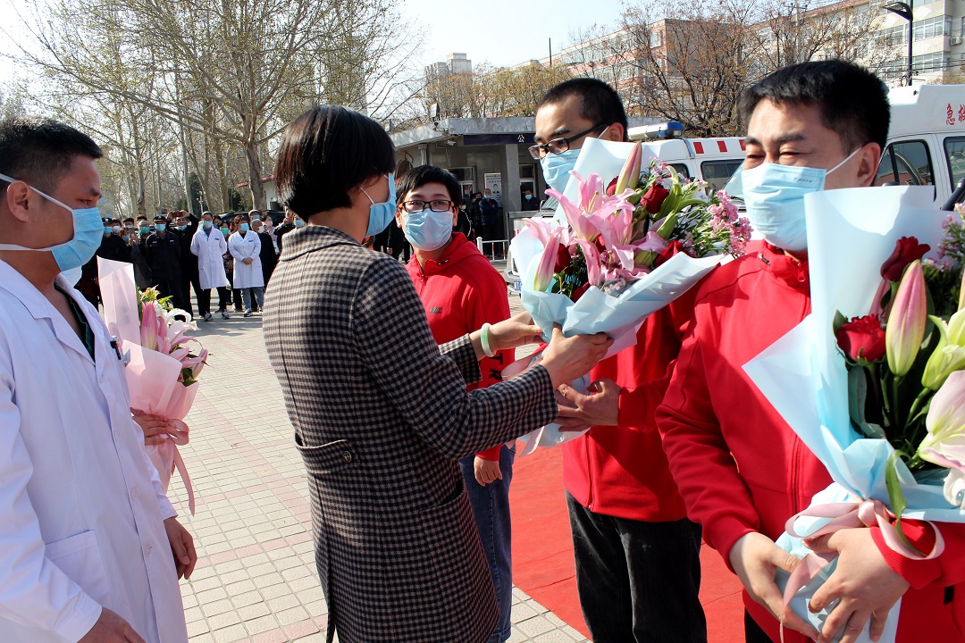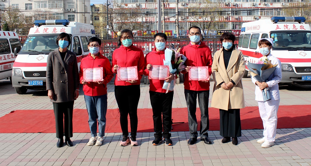 我院為支援武漢及市定點醫(yī)院疫情救治工作的張宏亮、欒紅超、陳晶、任志新舉行歡迎儀式,歡迎他們圓滿完成救治任務(wù),平安歸隊。