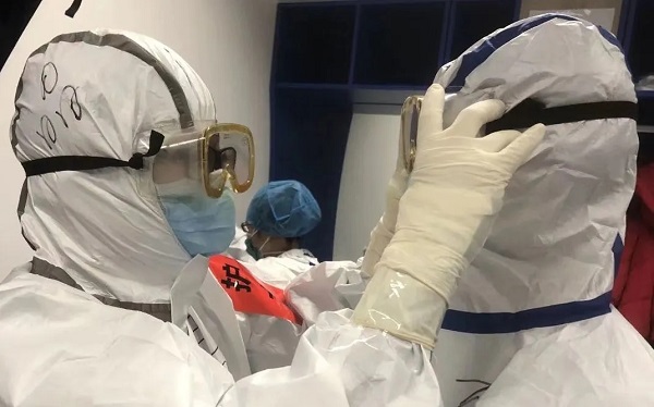 2月8日晚,我們迎來了在方艙工作的第一個(gè)班,出了酒店還未上車就看到司機(jī)師傅站在車門口對(duì)我們每個(gè)人說:“辛苦啦”!武漢人民感謝你們!"看到司機(jī)師傅的這種舉動(dòng)讓我很感動(dòng),無形中增加了我奮斗的動(dòng)力。由于防護(hù)用品緊張的問題還沒有得到徹底解決,我深知:對(duì)于湖北、武漢來說,一個(gè)口罩一件防護(hù)服都是來之不易的,為了省出更多的防護(hù)用品,我堅(jiān)持做到進(jìn)艙一次,只消耗一套防護(hù)用品。但這樣以來,就必須選擇在入艙前兩個(gè)小時(shí)就停止飲水。不能上廁所,防護(hù)服內(nèi)又悶又熱穿上一會(huì)兒就汗流浹背,臉被口罩帶勒出了道道血痕,護(hù)目鏡經(jīng)常會(huì)起霧,甚至?xí)嫔虾顾?,但我從來沒有叫過一聲苦。有兩次,我感到心慌氣短,幾乎要暈厥,都是硬撐著堅(jiān)持下來,沒有張嘴向隊(duì)長請(qǐng)過一次假,也不想讓患者看出我有任何異樣。