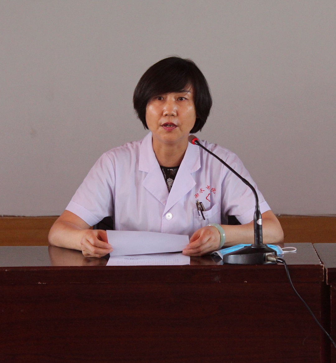 王玉新院長代表領(lǐng)導(dǎo)班子向受表彰的先進(jìn)支部和優(yōu)秀黨員表示熱烈的祝賀,向辛勤工作在各個(gè)崗位上的廣大黨員致以節(jié)日的問候!她指出,隆重紀(jì)念建黨99周年,是讓每一位黨員在緬懷歷史中牢記責(zé)任,在展望未來中激發(fā)動力。她希望全體黨員要對標(biāo)典型、看齊先進(jìn),時(shí)時(shí)處處懷揣“我是黨員,我?guī)ь^”的信念,充分發(fā)揮先鋒模范作用;要不斷提升政治站位,進(jìn)一步增強(qiáng)為民服務(wù)的宗旨意識,強(qiáng)化履職盡責(zé)的擔(dān)當(dāng)意識,始終保持勇爭一流的工作激情,在醫(yī)院建設(shè)發(fā)展中再創(chuàng)新佳績;要強(qiáng)化自身建設(shè),結(jié)合醫(yī)院等級評審、疫情常態(tài)化防控等工作的開展,認(rèn)真研究新形勢、時(shí)刻關(guān)注新變化、準(zhǔn)確把握新特點(diǎn),細(xì)化工作辦法、優(yōu)化工作方式,真正把自身工作成果轉(zhuǎn)化為助力醫(yī)院科學(xué)發(fā)展的實(shí)際成效;要提高專業(yè)水平,帶頭鉆研業(yè)務(wù)知識,不斷提高臨床應(yīng)急能力和醫(yī)療服務(wù)水平,以最堅(jiān)定最自覺最實(shí)在的行動向黨的生日獻(xiàn)禮。