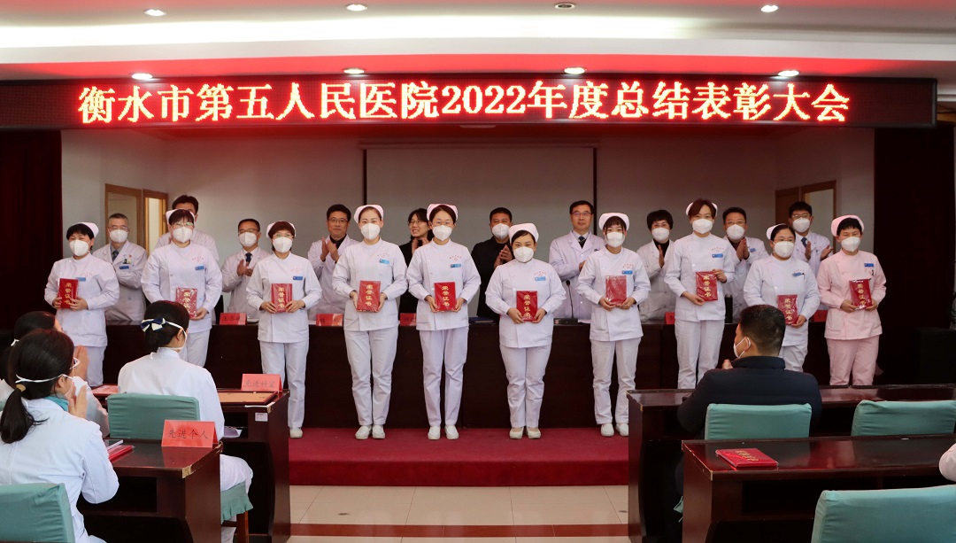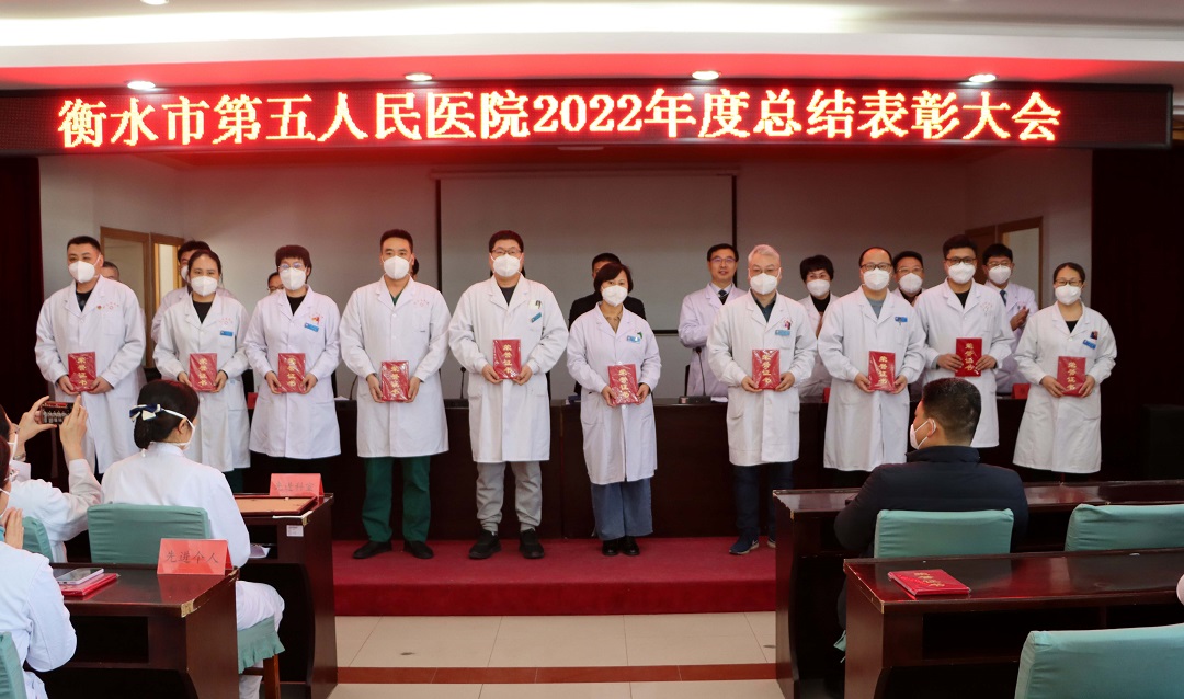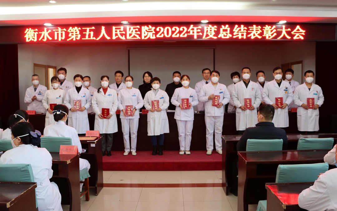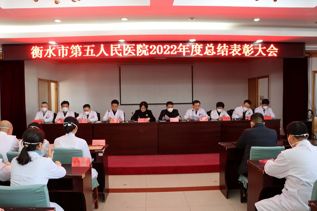 1月18日下午,衡水市第五人民醫(yī)院2022年度總結(jié)表彰大會在門診樓五樓大會議室舉行。衡水市桃城區(qū)政府副區(qū)長何紅衛(wèi),衡水市桃城區(qū)衛(wèi)健局黨組書記、局長鄭偉出席大會。醫(yī)院領(lǐng)導(dǎo)班子成員、全體中層干部、優(yōu)秀職工代表參加了本次會議。會議由院黨委書記韓非主持。