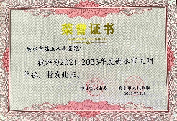 喜報!我院榮獲2021-2023年度衡水市文明單位