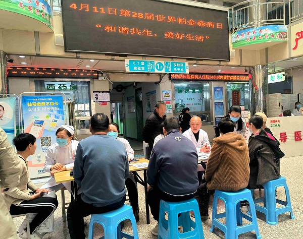 4月11日是第28個"世界帕金森病日",今年的主題是"和諧共生,美好生活"。為了普及帕金森病相關知識,增強廣大民眾對帕金森病的認識,我院神經(jīng)內(nèi)五科聯(lián)合康復科在門診大廳進行義診。